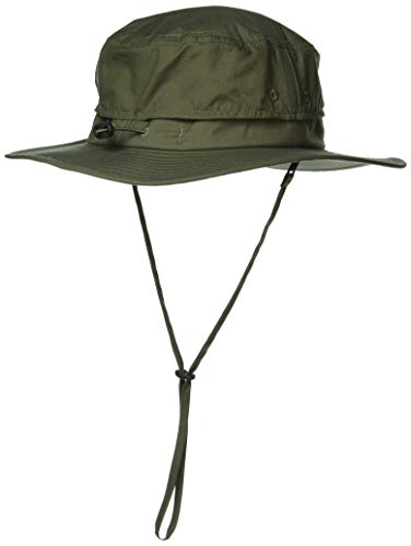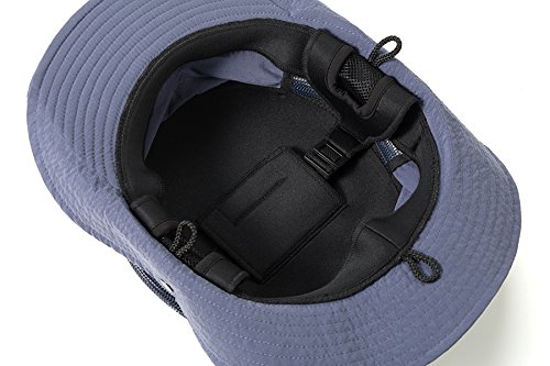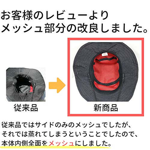 耐久・撥水・撥油・防汚を兼ね備えた、テフロン加工がされているため、ボートやサーフでの濡れやすい環境での着用に向いています。横の部分にメッシュ加工がされているため通気性がよく、首などに負担がかかりにくいネオプレーンストラップが付いているため、風に飛ばされる心配がなく、ストラップ自体も内部に収納が可能なっています。水際での釣りやアウトドアに向いてるので、濡れることがあるならかぶりたい一品です。