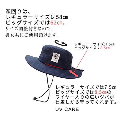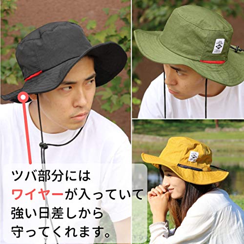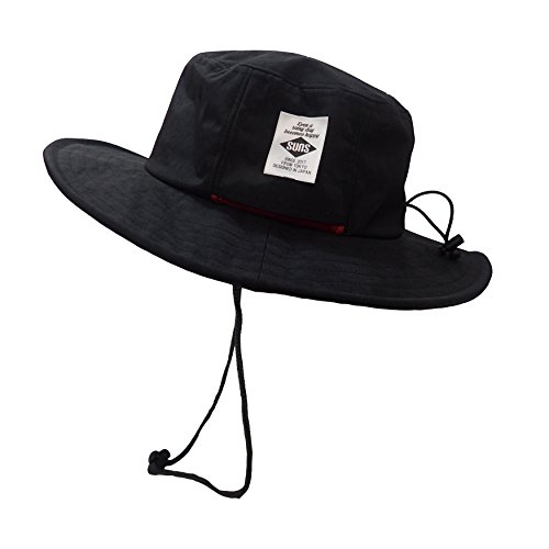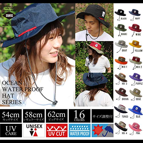 SUNS(サンズ)レギュラーサイズ 58cm 大きめ ビッグサイズ 62cm アドベンチャーハット サファリハット 撥水 防水 メンズ レディース サイズ調整 UVカット アウトドア カラフル H-051 (58㎝, BLACK)